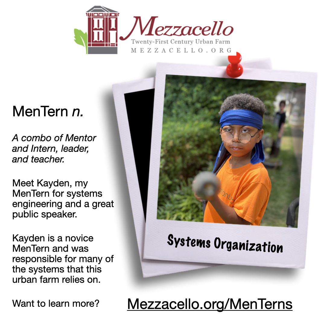 Oliver started at Mezzacello Urban Farm in our 2022 camp. Oliver was quiet and shy, but we saw a systems engineer and vet tech genius early on. Oliver was invited to become a MenTern for the 2025 season and he did not disappoint.